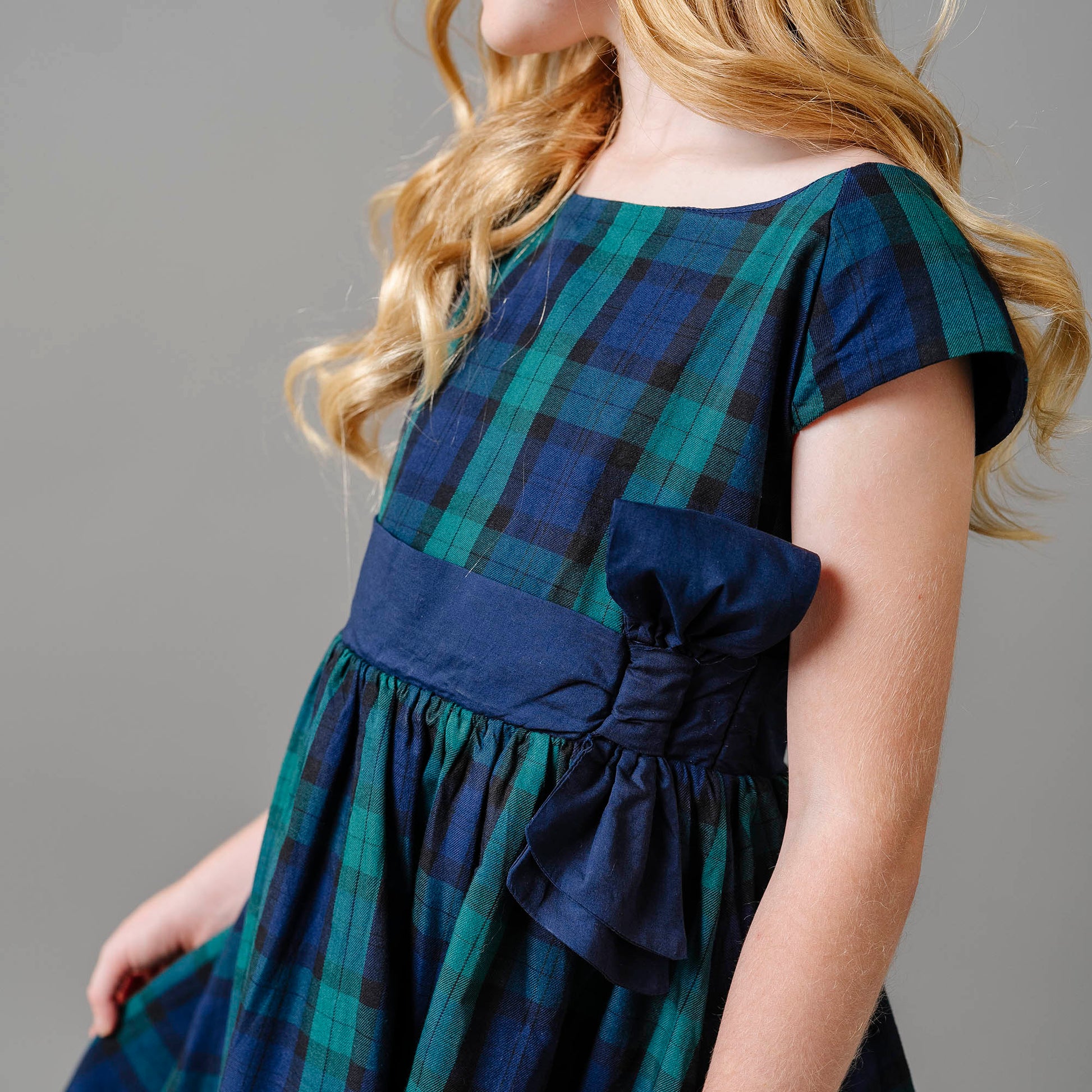 Our show-stopping cap sleeve party dress in soft cotton is the perfect look for all her special occasions. Features a dramatic waist sash and bow, twirl-worthy skirt, full lining, and a zipper at the center back for easy dressing. And what's better than finding the perfect holiday outfit that is also sustainable?